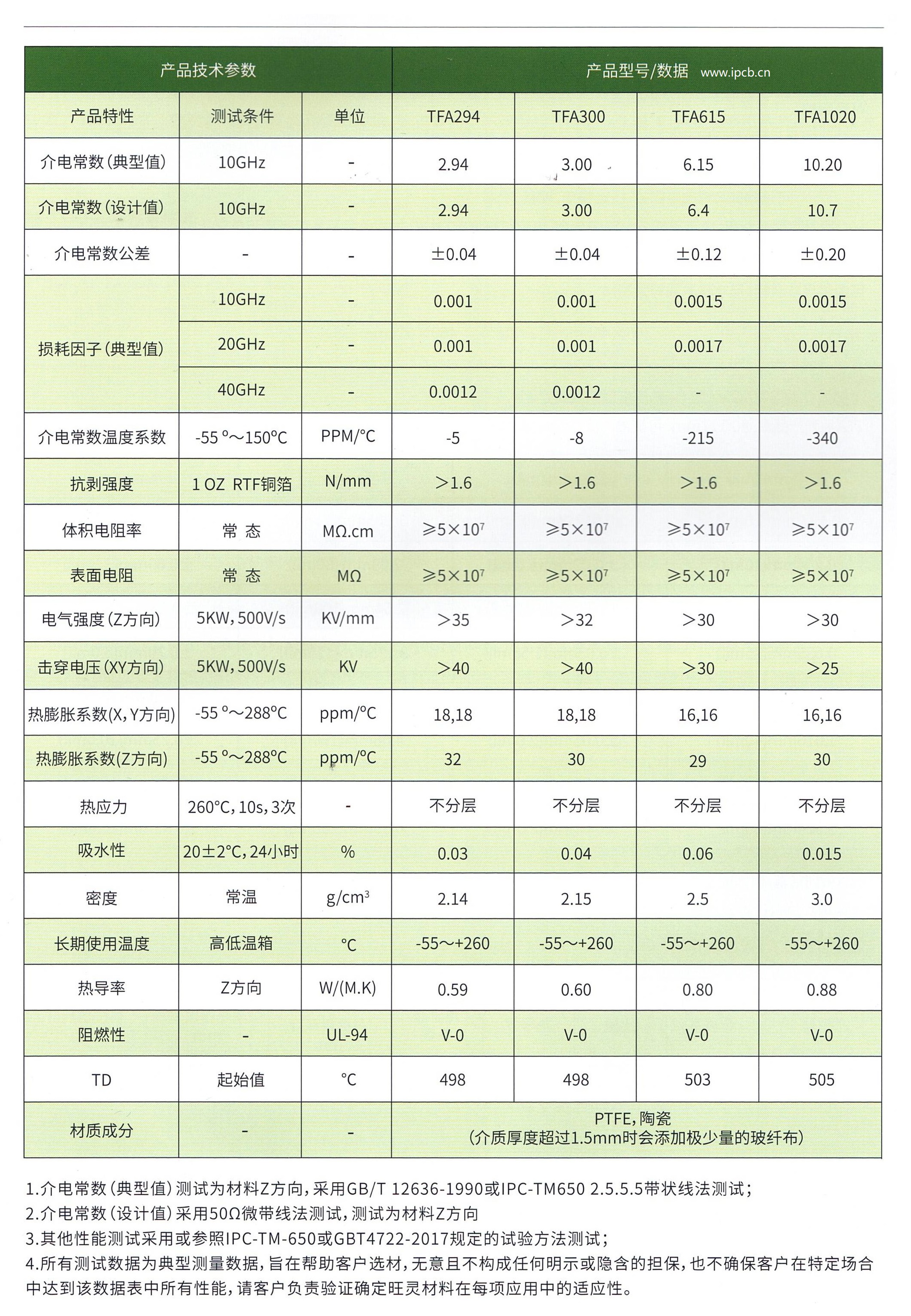 該系列的介電常數為2.94、3.0、6.15、10.2。TFA系列的標準與RTF低粗精銅箔,減少導體損失,同時提供優(yōu)良的剝離強度