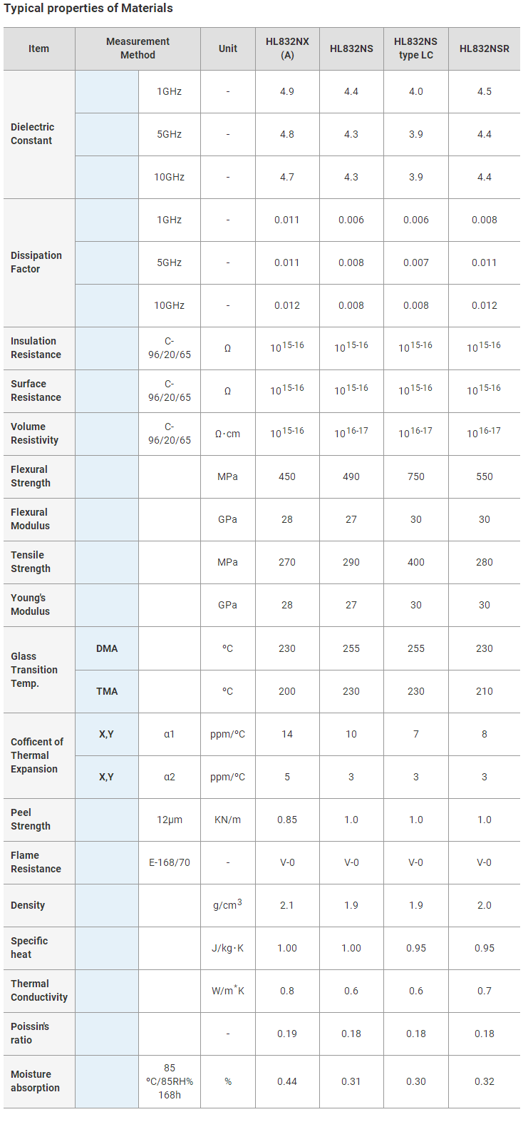 三菱瓦斯HL-832NXA材料參數(shù)規(guī)格